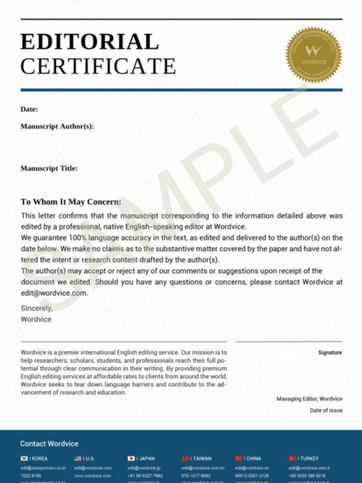 - Evidence of paid or certified free English language editing must be submitted.